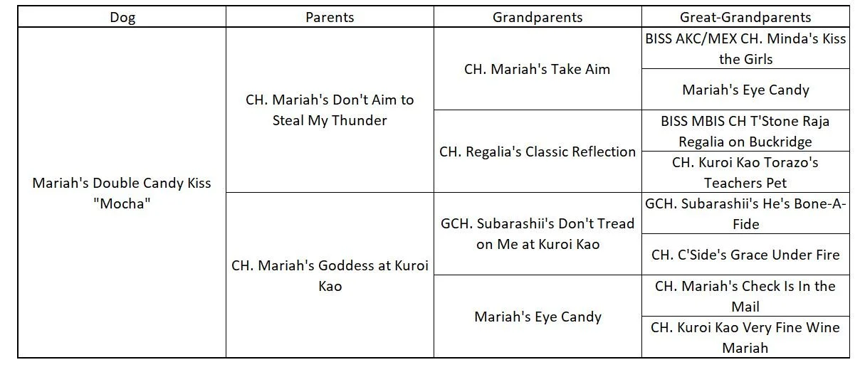 CH. Mariah’s Double Candy Kiss “Mocha”